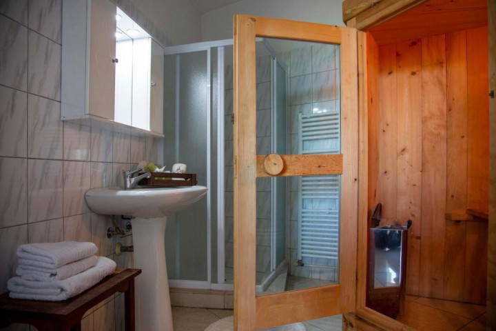 The property includes two bathrooms, one of which offers a private sauna—a distinctive touch of wellness that turns your stay into a rejuvenating retreat for both body and mind.