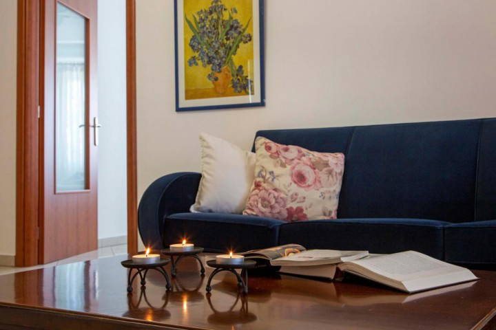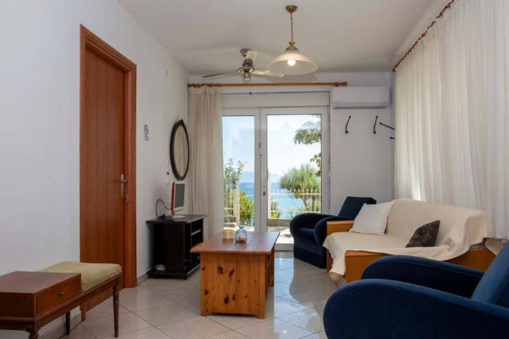 Featuring three comfortable bedrooms, a separate living room, and an additional sitting area with a sofa bed, the apartment is ideal for families or groups looking for generous space by the water. The classical décor adds character and timeless elegance, creating a warm and welcoming atmosphere.