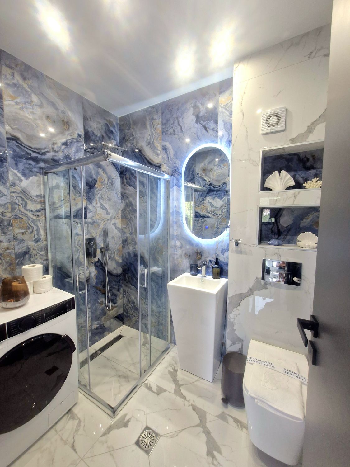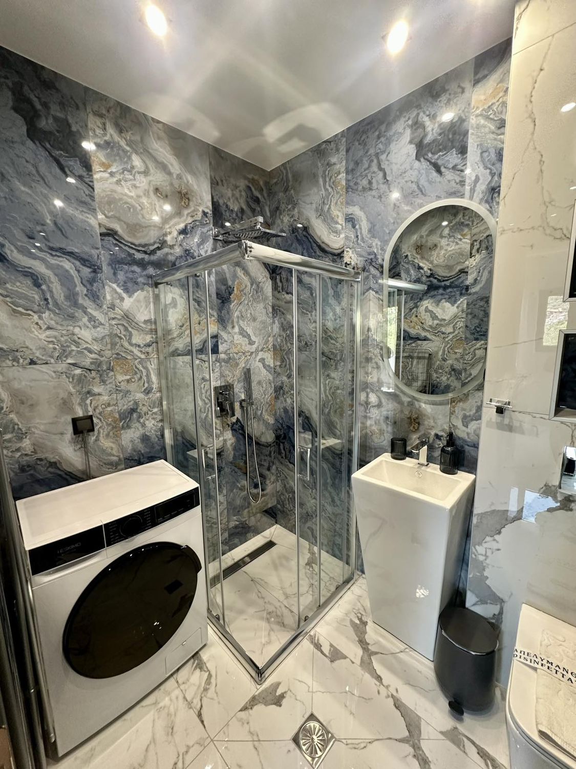 Only a breath away from the sea—where the gentle sound of the waves becomes your natural morning melody and endless blue stretches before your eyes—this residence blends elegance, comfort, and understated luxury. The open-plan living and dining area, seamlessly connected to a fully equipped kitchen, creates a bright, harmonious space—perfect for relaxed moments or a romantic dinner after sunset.