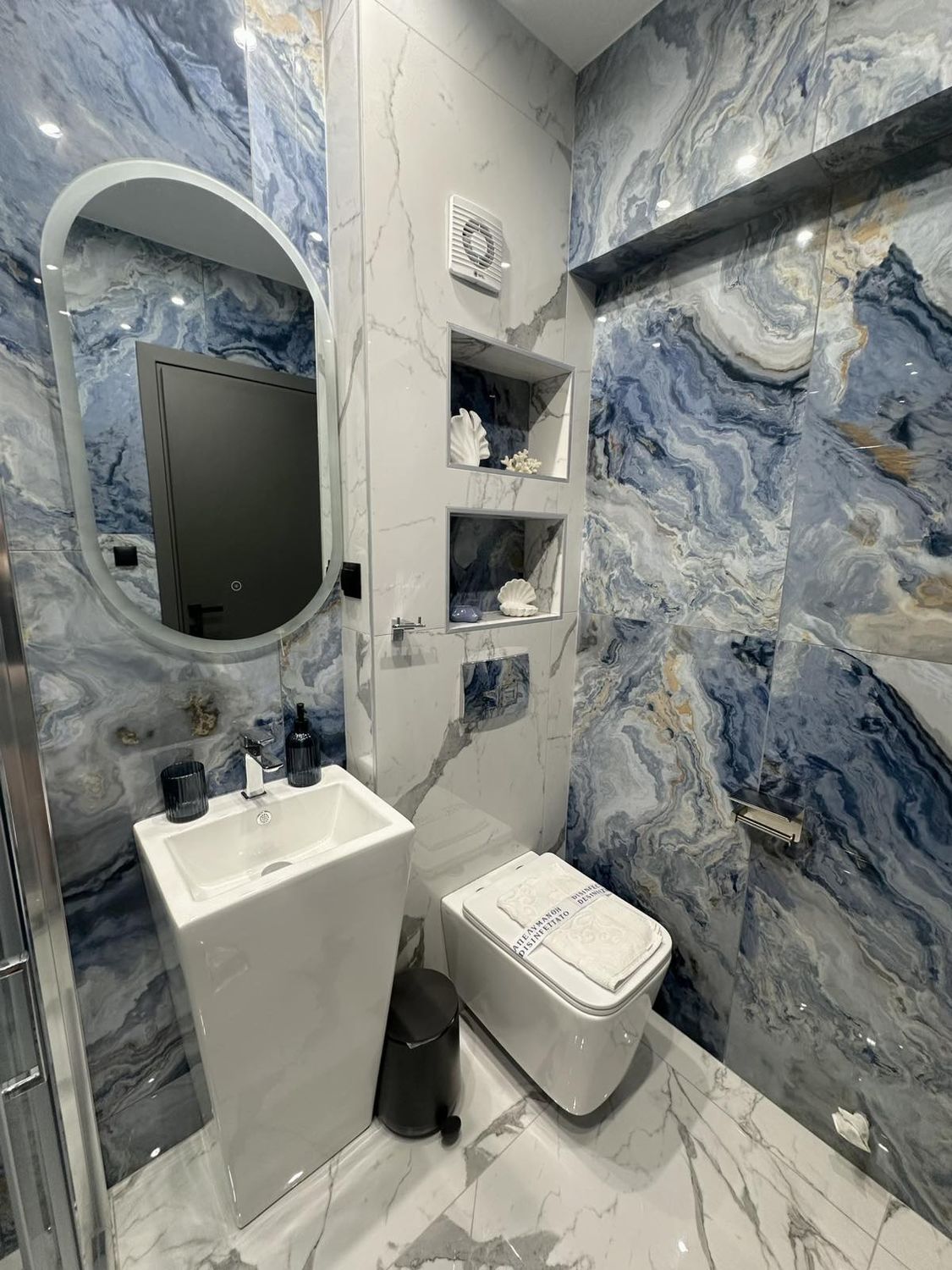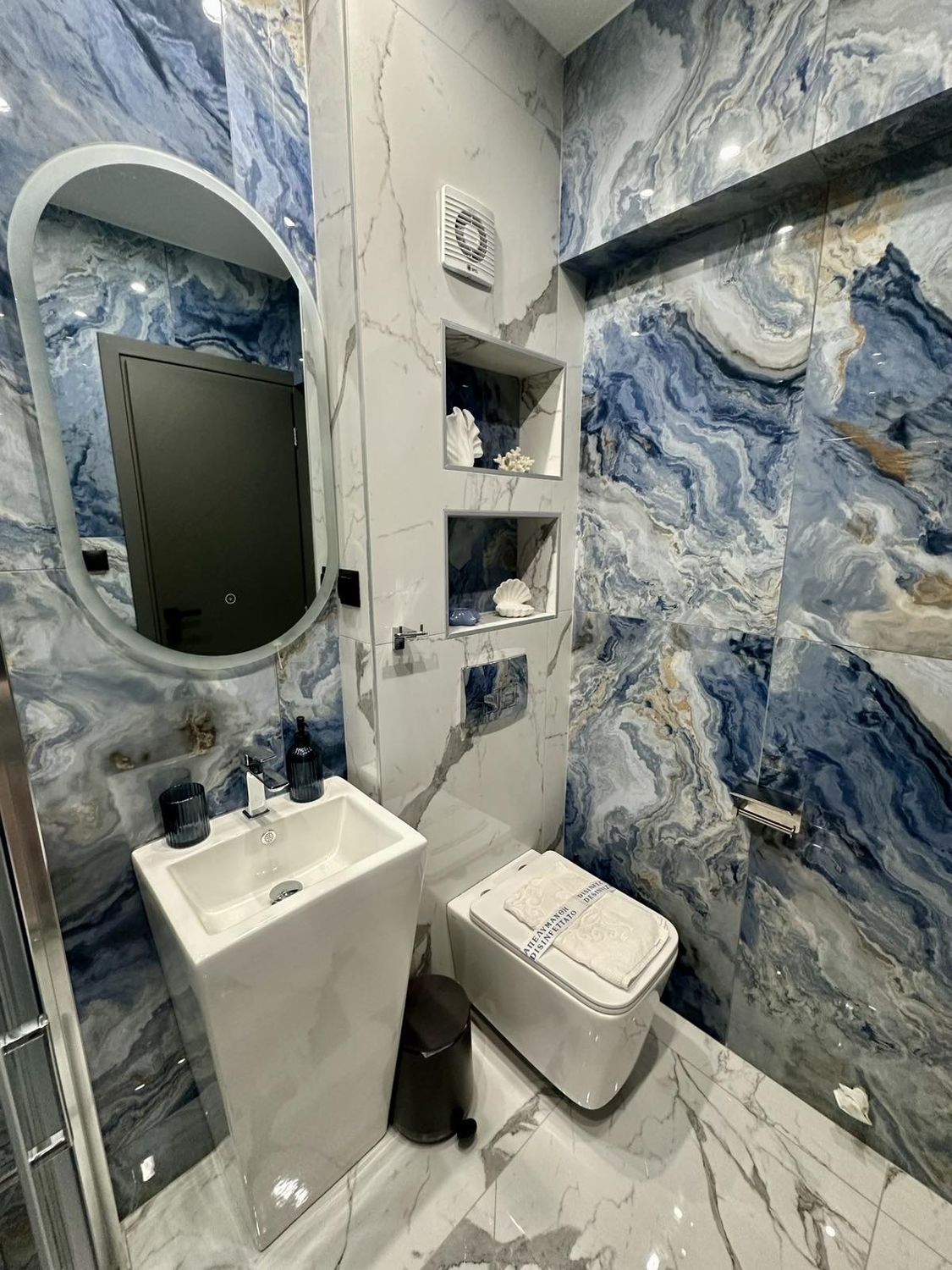 The spacious bedroom offers privacy and absolute serenity, while the modern bathroom, designed with refined details, completes a high-standard hospitality experience.